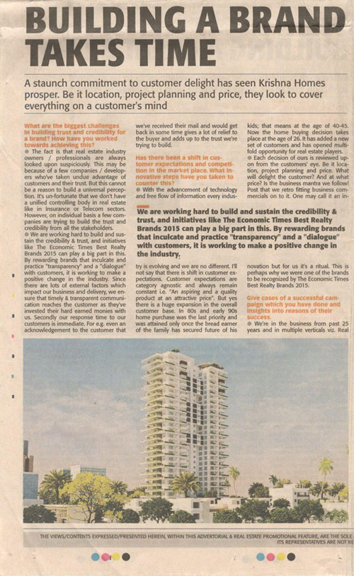 Featured article on Economic Times for being awarded – ET Best Realty Brand 2015